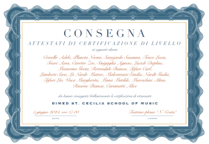 Il 5 giugno in apertura del saggio di fine anno della classe I B , si svolgerà la cerimonia di consegna degli attestati di certificazione di livello per lo strumento musicale agli alunni delle classi I, II e III B che hanno partecipato all’iniziativa.