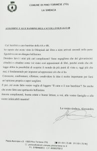 Per i bambini di IV A e IV B oggi è giunta a scuola una lettera molto gradita da parte della Sindaca nella quali li loda per la loro passione per la lettura che li ha portati a vincere le Olimpiadi del libro e li invita a riflettere su come un buon lettore sarà sicuramente un cittadino capace di fare scelte consapevoli.